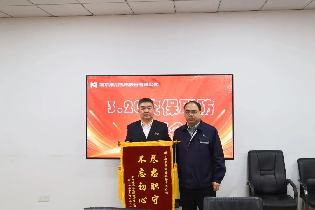 表彰會由康尼集團(tuán)運(yùn)營保障部高級主管李鳳閣主持。會上,康尼精機(jī)綜合部尹海軍部長宣讀了對我司的感謝信,手寫的感謝信帶著濃濃的情意和溫暖,字里行間表達(dá)著對我司安保服務(wù)的充分肯定和真摯謝意。康尼集團(tuán)運(yùn)營保障部方偉國部長宣讀了獎勵決定,對勇擒竊賊事件中南京保安高度警惕、認(rèn)真負(fù)責(zé)的工作態(tài)度,和敢于亮劍、善于亮劍的擔(dān)當(dāng)精神予以了高度贊譽(yù),向受表彰的6名保安員頒發(fā)了榮譽(yù)證書和獎金,向公司授予了“盡忠職守 不忘初心”錦旗2面,以表感謝!